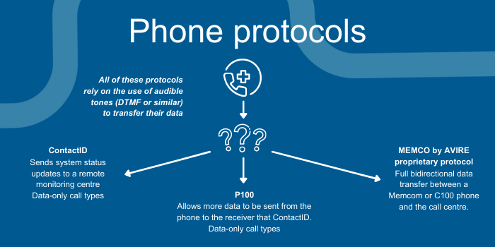 For the “voice+data” protocols (Memcom uses ContactID, P100 and the proprietary MEMCO protocols), this information is sent as data using DTMF tones at the start of the call which the call centre system can easily decode/log, and if it’s an alarm call then the phone switches into live voice mode for the two-way conversation part of the call, whereas for test and tech event calls there’s no need to enter voice mode and so the call ends once all the information has been exchanged. With these protocols, additional information may then also be sent during the data part of the call to enhance the call handling process.