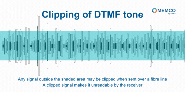 - clipping of the tone: when converted into data, there may be a loss of the top and bottom of the DTMF signal which changes the frequency, again, making it unreadable